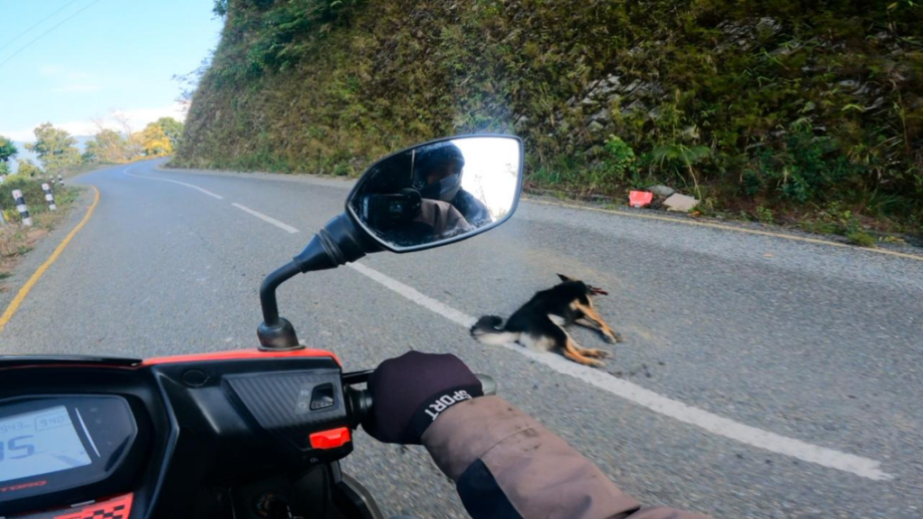 The Dog Died While I Was Going To Khilang On The Way Yesterday we went to this place when we crossed the river called Vijayapur and there was a road going to Sikles and another way, and we went to the road going to Sikles, and then after reaching a little bit higher, five kilometers up, there was a dead dog on one of the roads, and the dog made me feel like I was killed and died on the road. I was also making a video about how it would be if a person was killed on such a road.